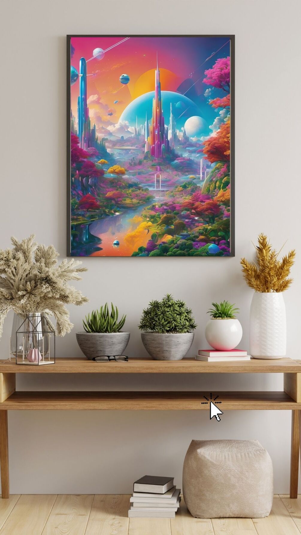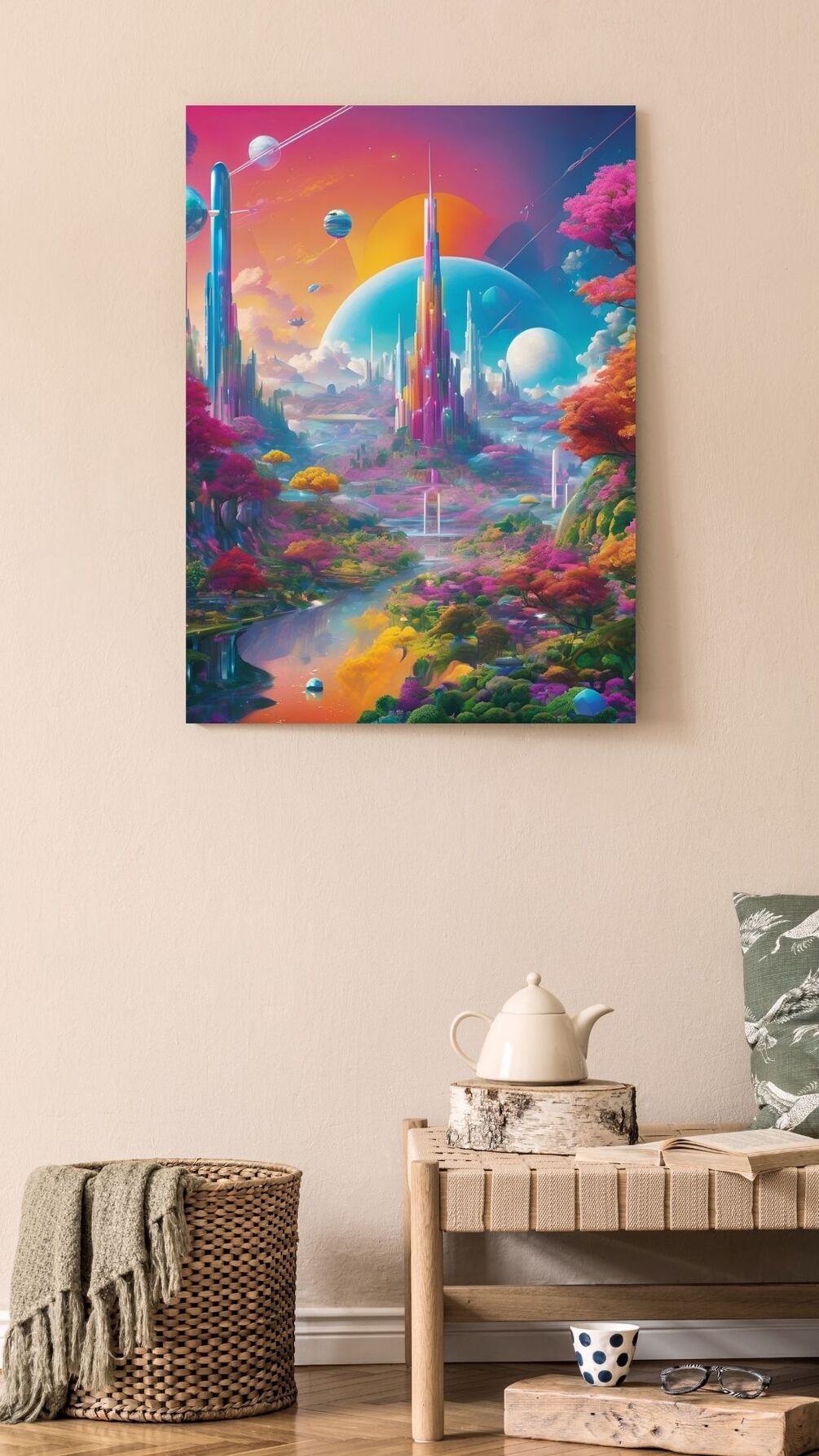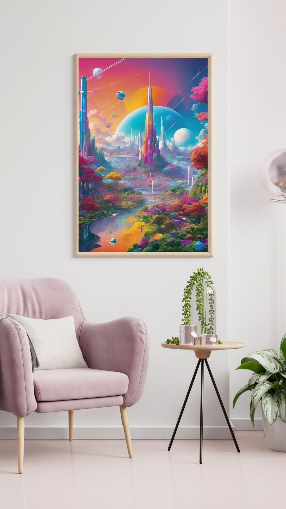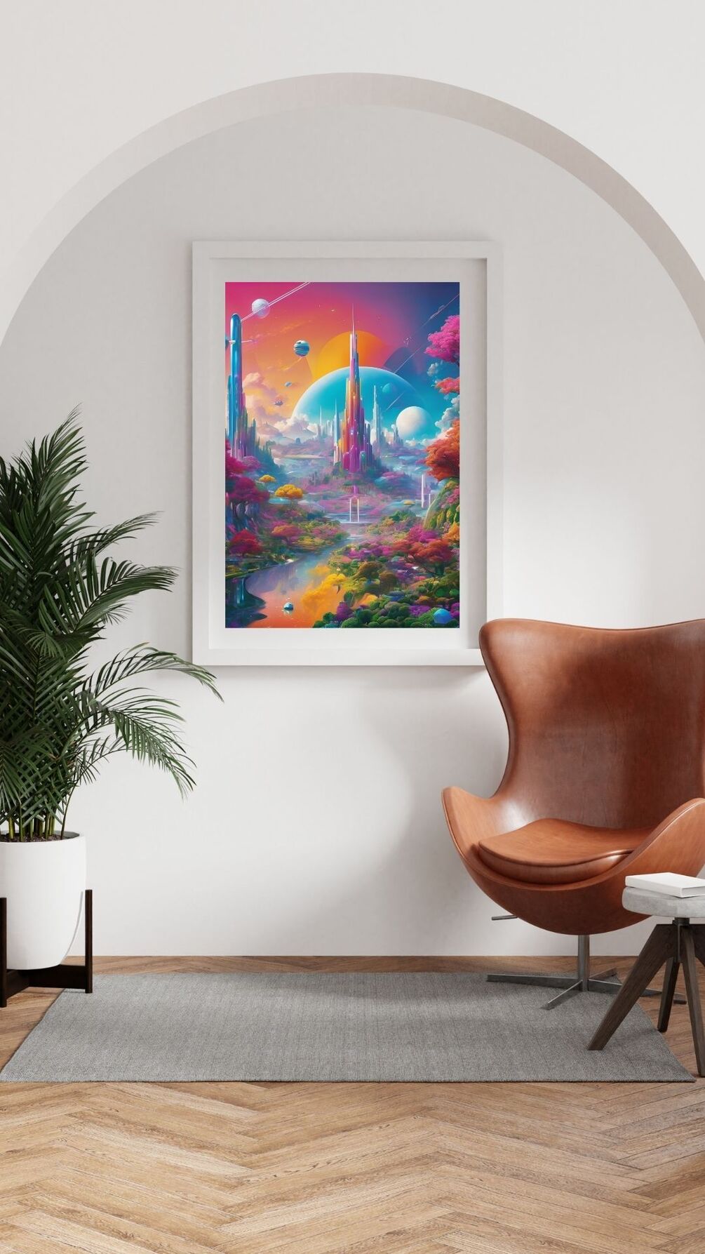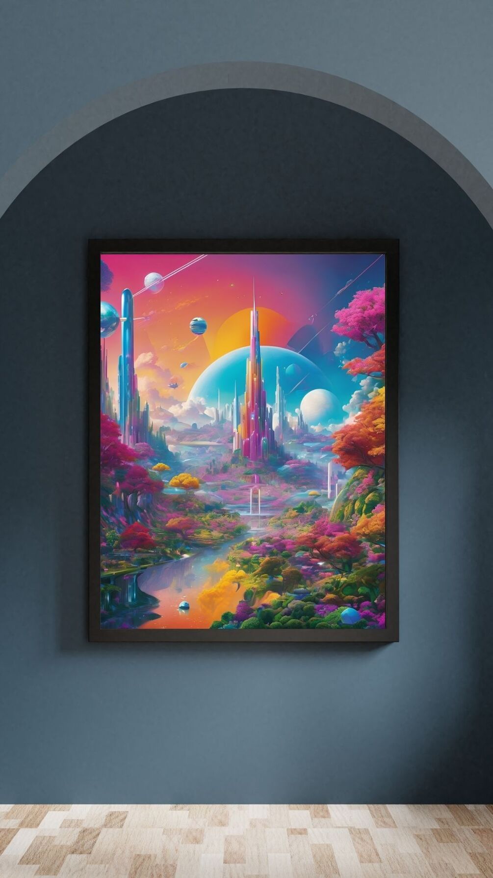 Step into a mesmerizing world of possibility with our AI-generated artwork, envisioning a digital utopia where technology harmonizes with nature, fostering equality and sustainability. This unique piece offers a glimpse into a future where advanced AI systems govern and assist human civilization. Perfect for those seeking thought-provoking decor that sparks conversation and inspires hope for tomorrow. Add a touch of futurism to your space or gift it to someone with a passion for innovation and imagination. Explore our collection and bring the vision of a better tomorrow into your home today.
